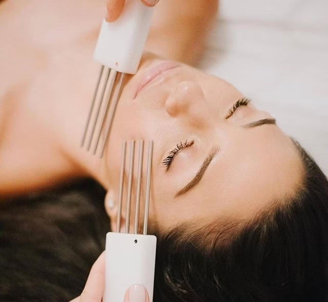 Microcurrent services are not appropriate for every client. We will review a short intake during booking and again in the room. Do not book microcurrent if you are pregnant or have an implanted electronic device. If you are unsure, contact us before booking and we will guide you.